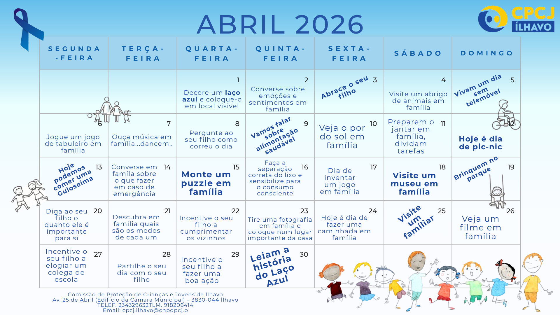 Participe, colocando um laço azul (ao peito ou na janela), iluminando a casa com luz azul ou participando nas sugestões apresentadas.